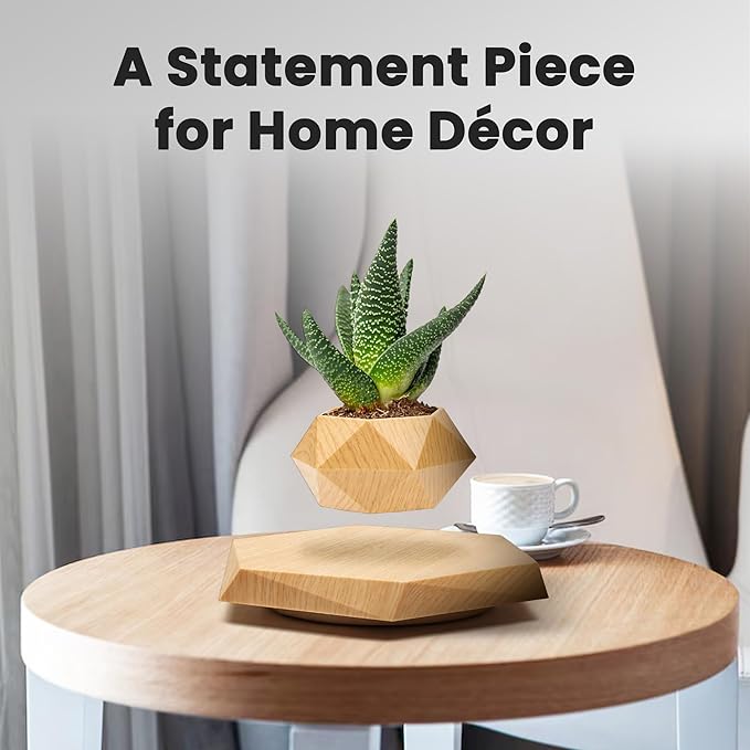 - EASY TO USE, QUIET AND STABLE PERFORMANCE: This floating plant pot is designed for simple use with no tools required for installation, allowing you to set up your levitating planter quickly and enjoy its unique display. The magnetic levitation system operates quietly, providing smooth and stable rotation for plants weighing up to 0.44 lbs (200 grams). The even weight distribution ensures a flawless floating effect, adding elegance and charm to your space.